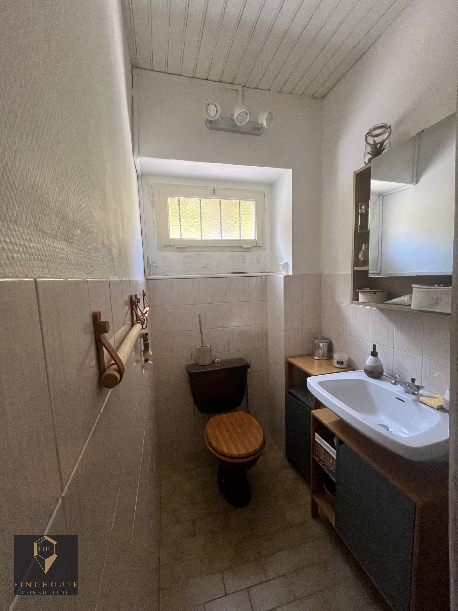 Elle est composée au RDC d'une cuisine séparée et aménagée, un salon/salle à manger, une salle d'eau avec Wc.