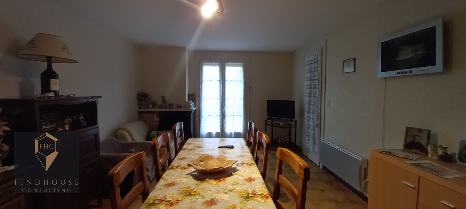 Cette maison est composée d'une entrée, une cuisine séparée et aménagée suivie d'une véranda, un salon/séjour de 22 m² avec cheminée et porte fenêtre pour un accès direct au jardin.