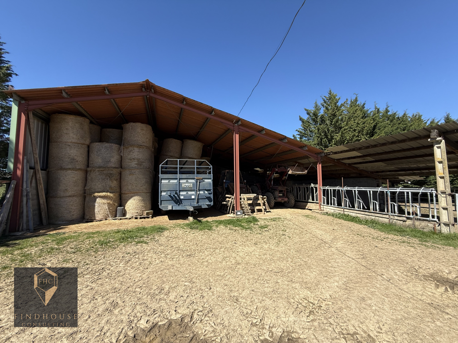 À l'extérieur, plusieurs dépendances dont une étable indépendante de 79 m² au sol (sur deux niveaux), un garage de 50 m², une grange de 72 m2, un hangar métallique de 253 m2 et une terrasse couverte.