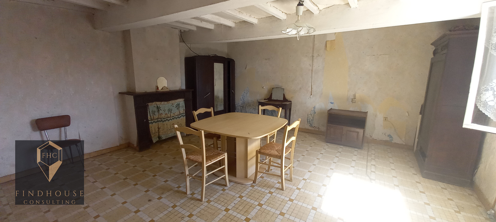 Tavaux à prévoir : remise aux normes de l’électricité, isolation, changement de toutes les fenêtres, fosse septique non conforme, réhabilitation et modernisation de l’ensemble.