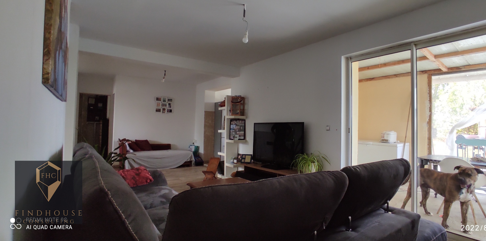 Composée d'une grande pièce de vie comprenant une cuisine aménagée et équipée US semi-ouverte, 3 chambres, salle de bain avec Wc et un Wc séparé. L'ensemble sur un terrain clôturé de 967 m² avec hangar et atelier.