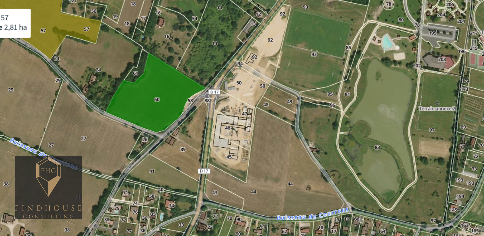 L'Isle-en-Dodon (31230)SOUS COMPROMIS ! L'agence Findhouse Consulting vous prĂ©sente ce magnifique terrain constructible de 19 259 mÂČ d'un seul tenant.