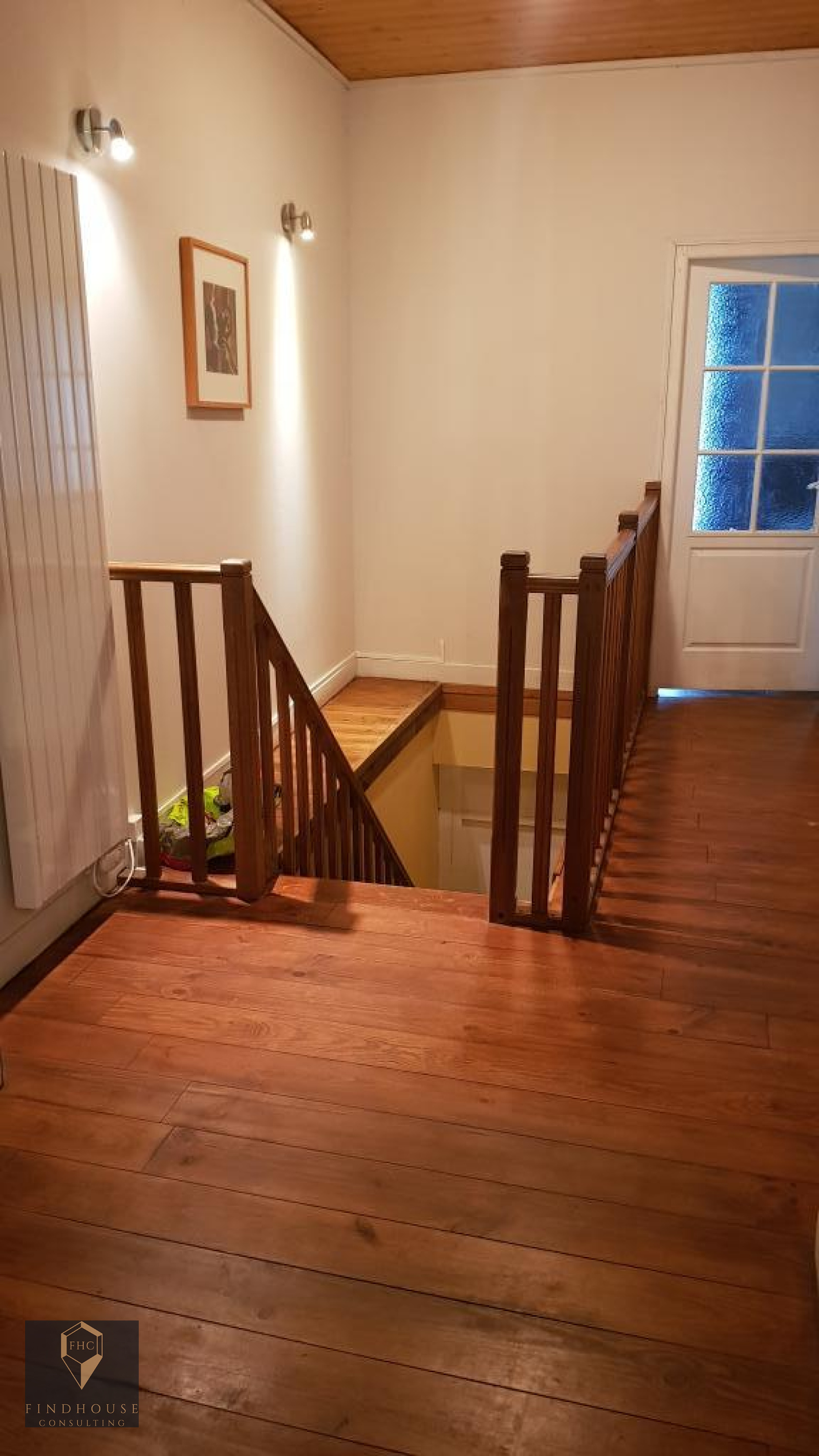 Accès au 1er étage, un beau palier desservant une cuisine séparée et équipée ouverte sur le séjour, une chambre ou bureau, un wc indépendant avec rangements, une suite parentale avec une salle de bain (21,29 m²).