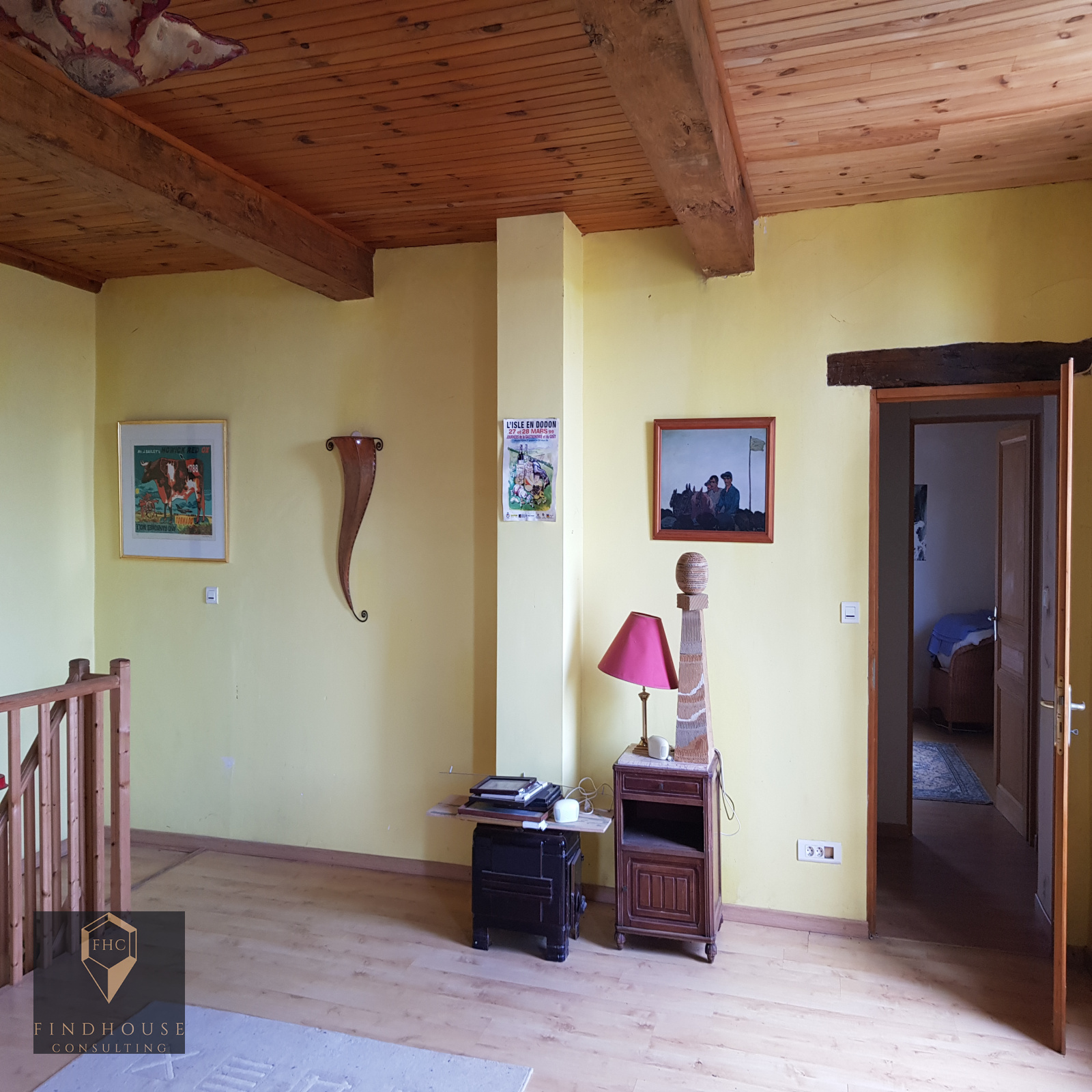 A l'étage, une grande pièce de 30 m² permettant de créer une chambre supplémentaire ou un salon d'hiver/bureau offrant une jolie vue sur les coteaux. Un couloir desservant une chambre avec accès à un joli balcon vue sur jardin, une salle d'eau avec wc. Une autre chambre spacieuse avec vue sur la place du village. Accès aux combles aménageables de 30 m².