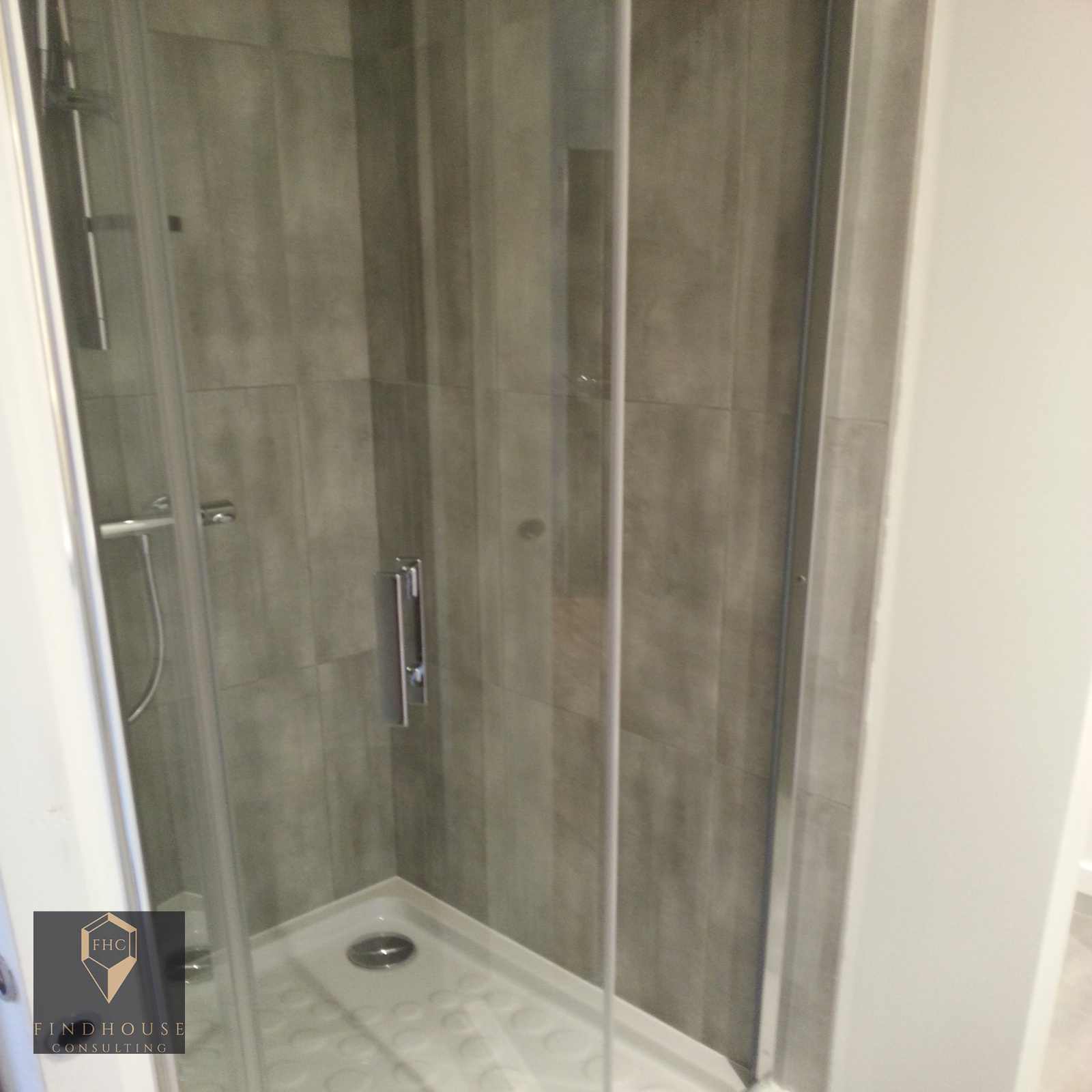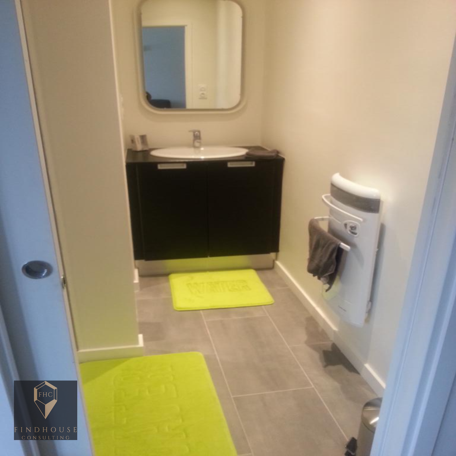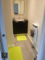 Il dispose également de 2 placards de rangement avec lave-ling. Une spacieuse salle d'eau, douche, wc, meuble vasque granit noir et son miroir lumineux.