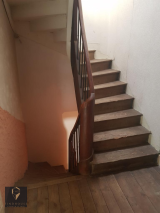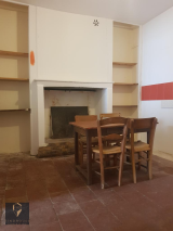 Edifiée sur 3 niveaux, cette maison est composée au rdc, d'un couloir desservant un beau salon/séjour de 25 m² avec poêle à bois (tomettes ancienne au sol), une cuisine de 10 m² séparée non équipée avec cheminée et ouverte sur le salon, un cellier/buanderie avec cheminée, une salle d'eau avec wc séparé.