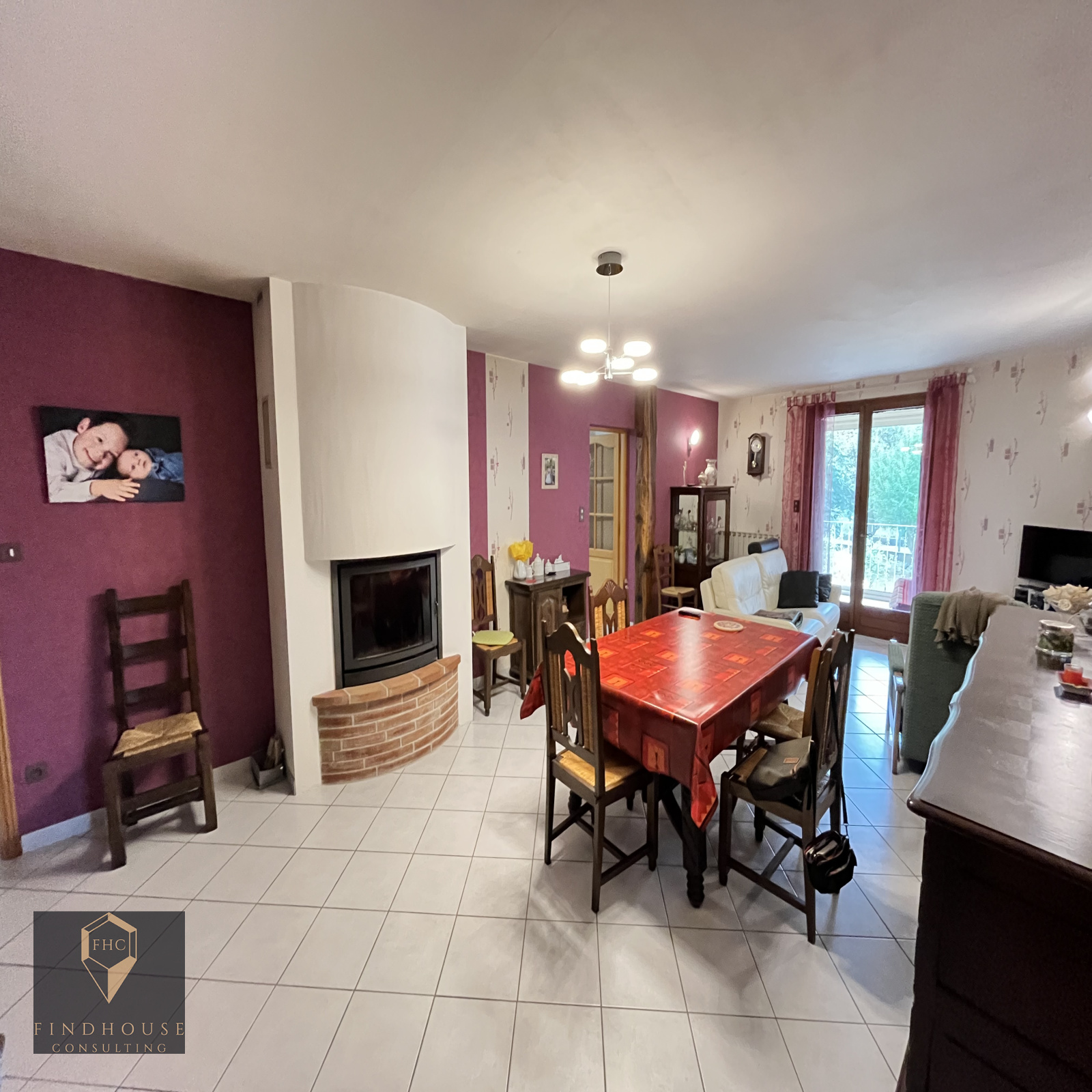 Cette villa est composée dans la partie vie, d'une entrée, une cuisine séparée et équipée avec accès à la véranda, une grande salle à manger de 34 m² avec insert et un salon.