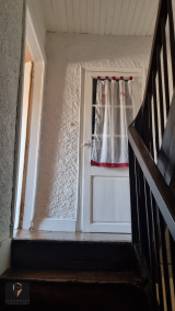 Cette maison est composée au RDC d'une entrée sur un long couloir distribuant un salon avec cheminée, une cuisine séparée semi- équipée, un second salon ou chambre de 18 M2, une salle d'eau avec WC et un espace buanderie/ cellier. Accès au jardin fleuri et intimiste.