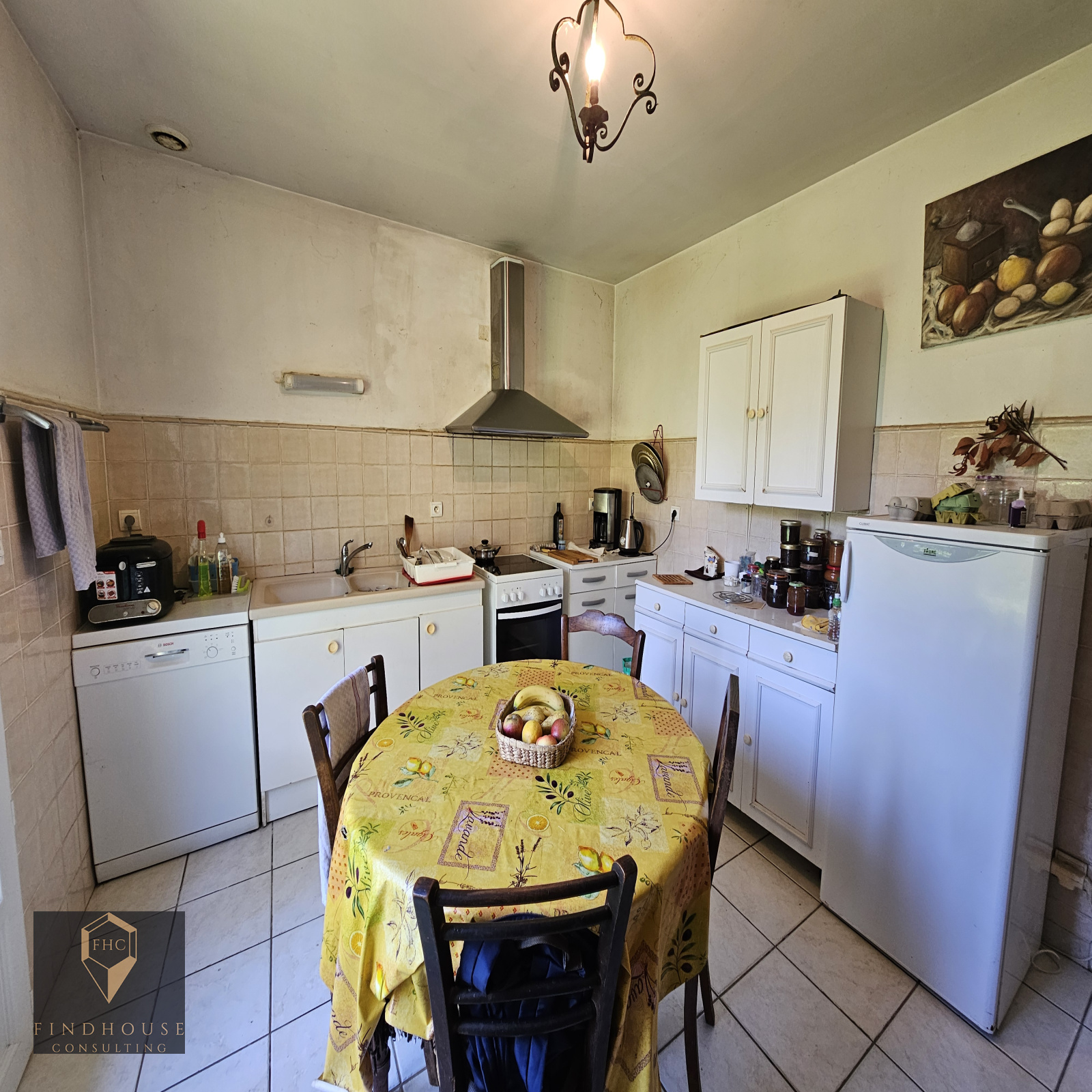 La maison se compose d'une entrée, une cusine séparée, une salle à manger/ salon traversant avec insert à bois donnant sur une terrasse couverte .