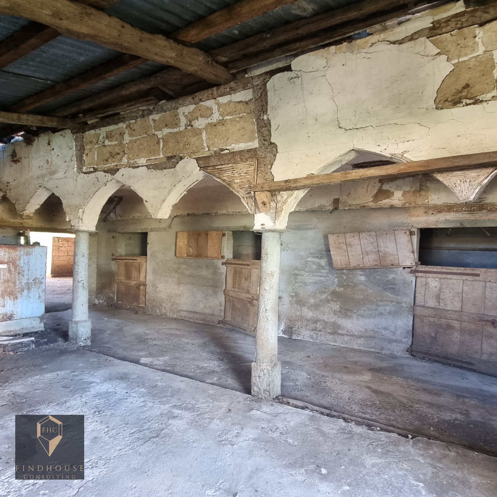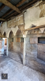 A l'extérieur, attenant à la maison, une vaste grange couverte en partie aménagée de box pour chevaux, animaux ou stockage. Idéale pour l'aménagement d'une terrasse / cuisine d'été ou simplement pour abriter plusieurs véhicules, engins agricoles...
