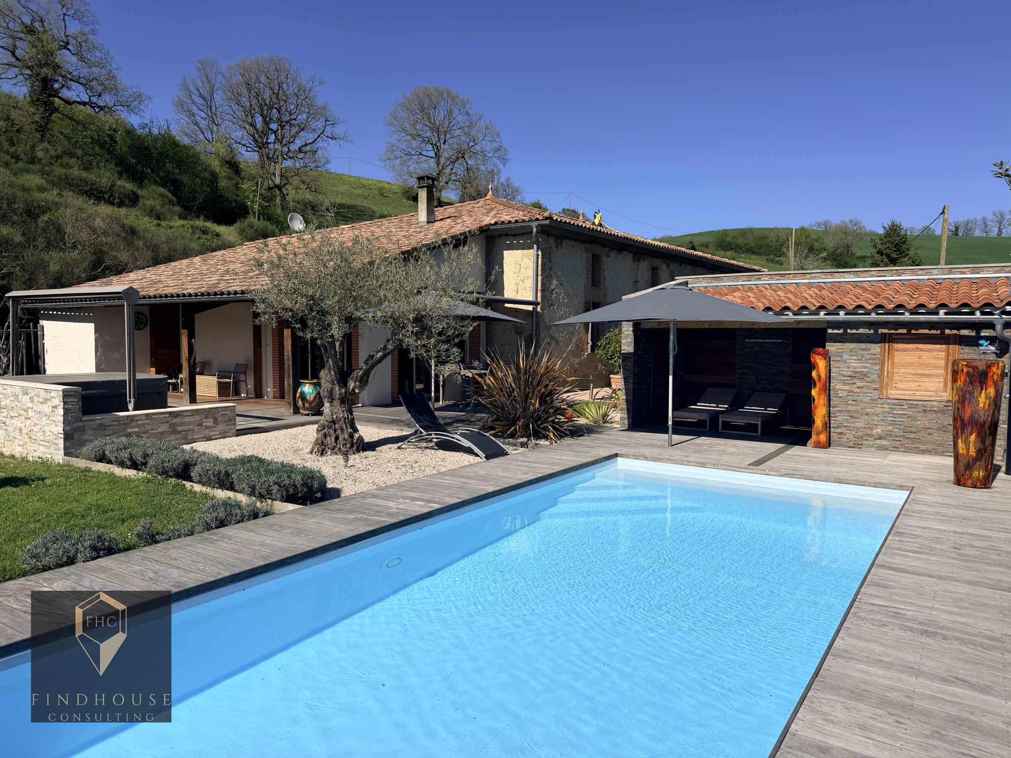 À l’extérieur, vous profiterez d’un véritable havre de paix : une piscine récente, au sel et chauffée, un pool-house convivial, un spa 5 places ainsi qu’une superbe terrasse de 130 m² et un terrain de pétanque, idéale pour vos moments de détente et de réception en plein air.