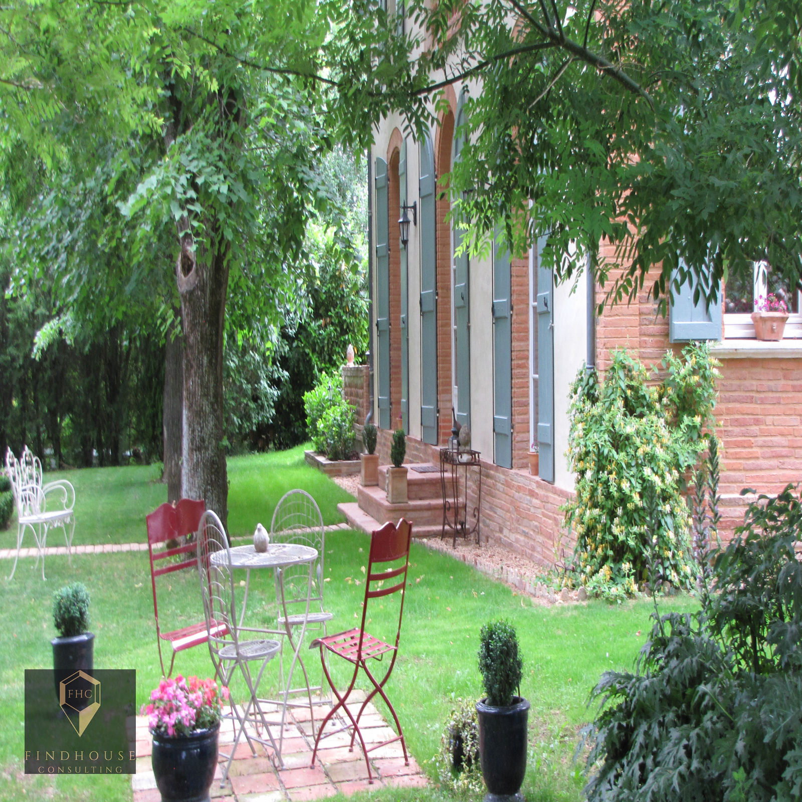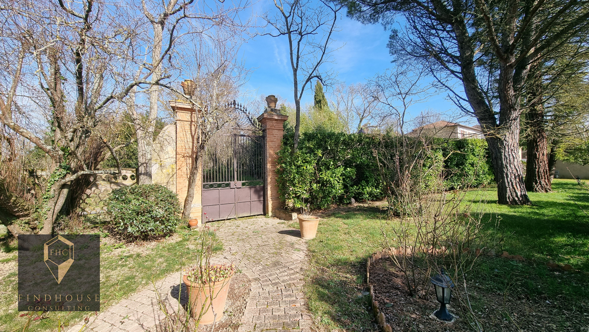 A l'extérieur, vous serez séduit.e par son magnifique parc arboré de toutes sortes de végétations, il suffit de suivre les allées de pavés pour admirer la floraison au printemps. Présence d'une grande réserve d'eau en brique foraine. Plusieurs terrasses entourent la maison.