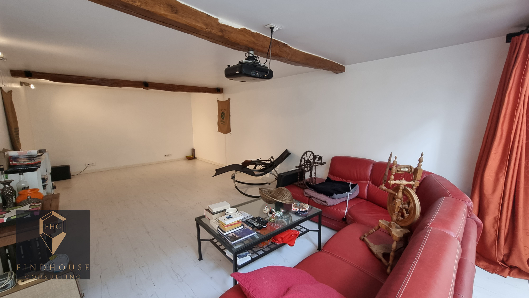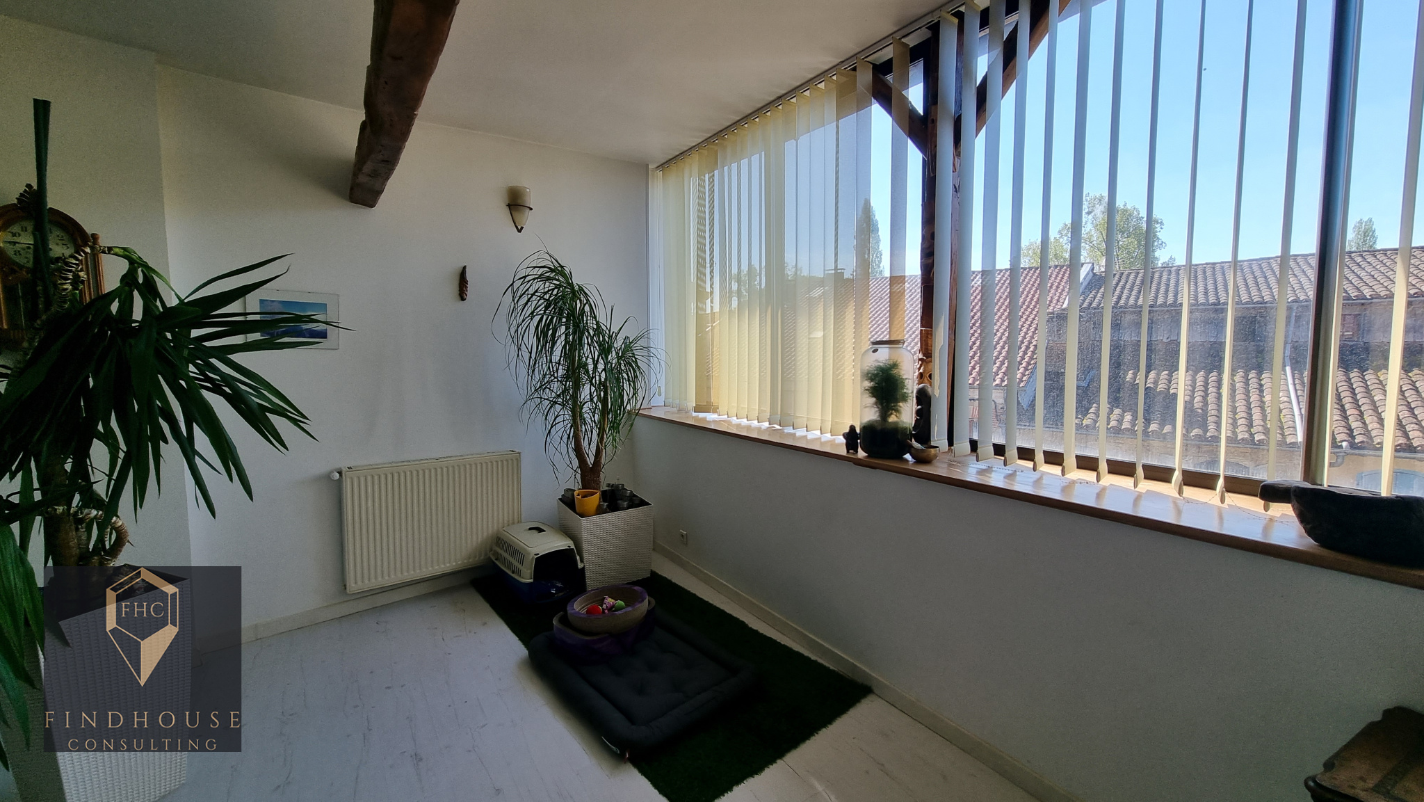 - Un magnifique salon lumineux de 25 m² avec verrière et poutres apparentes (ancienne mirande)