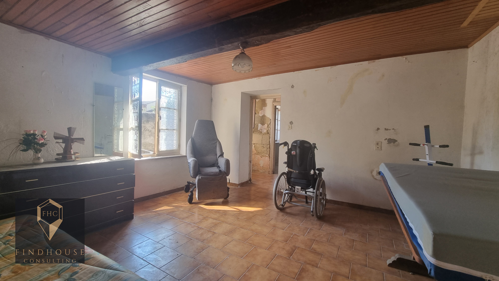La maison étant à rénover : menuiseries bois simple vitrage, sanitaires, isolation des combles et murs, électricité/plomberie. Toiture en bon état. La maison est raccordée au tout à l'égout.