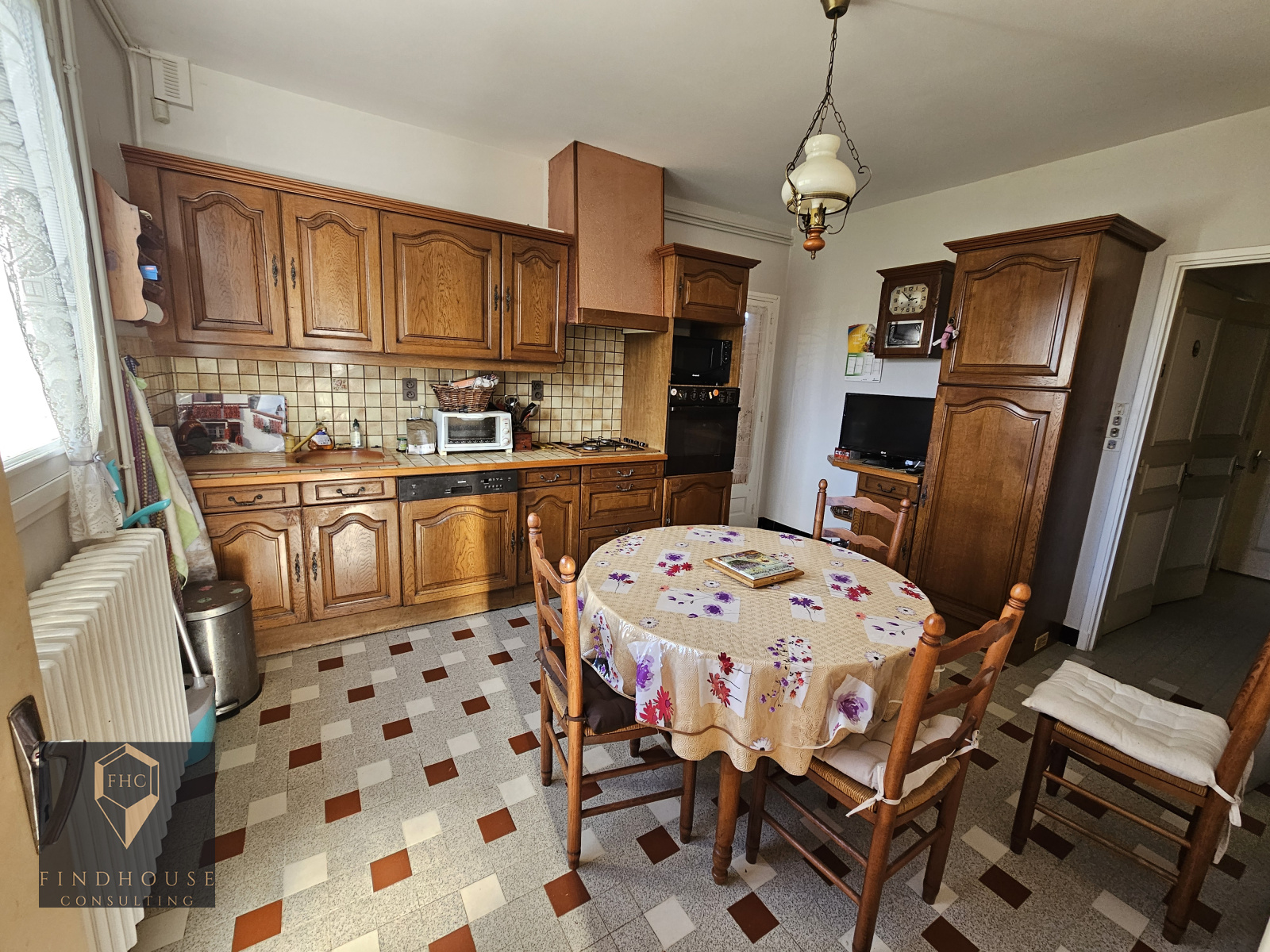 Elle offre une entrée, une cuisine séparée et équipée, un salon/ salle à manger avec insert, trois chambres dont 2 avec placard, une salle d'eau et un wc indépendant.