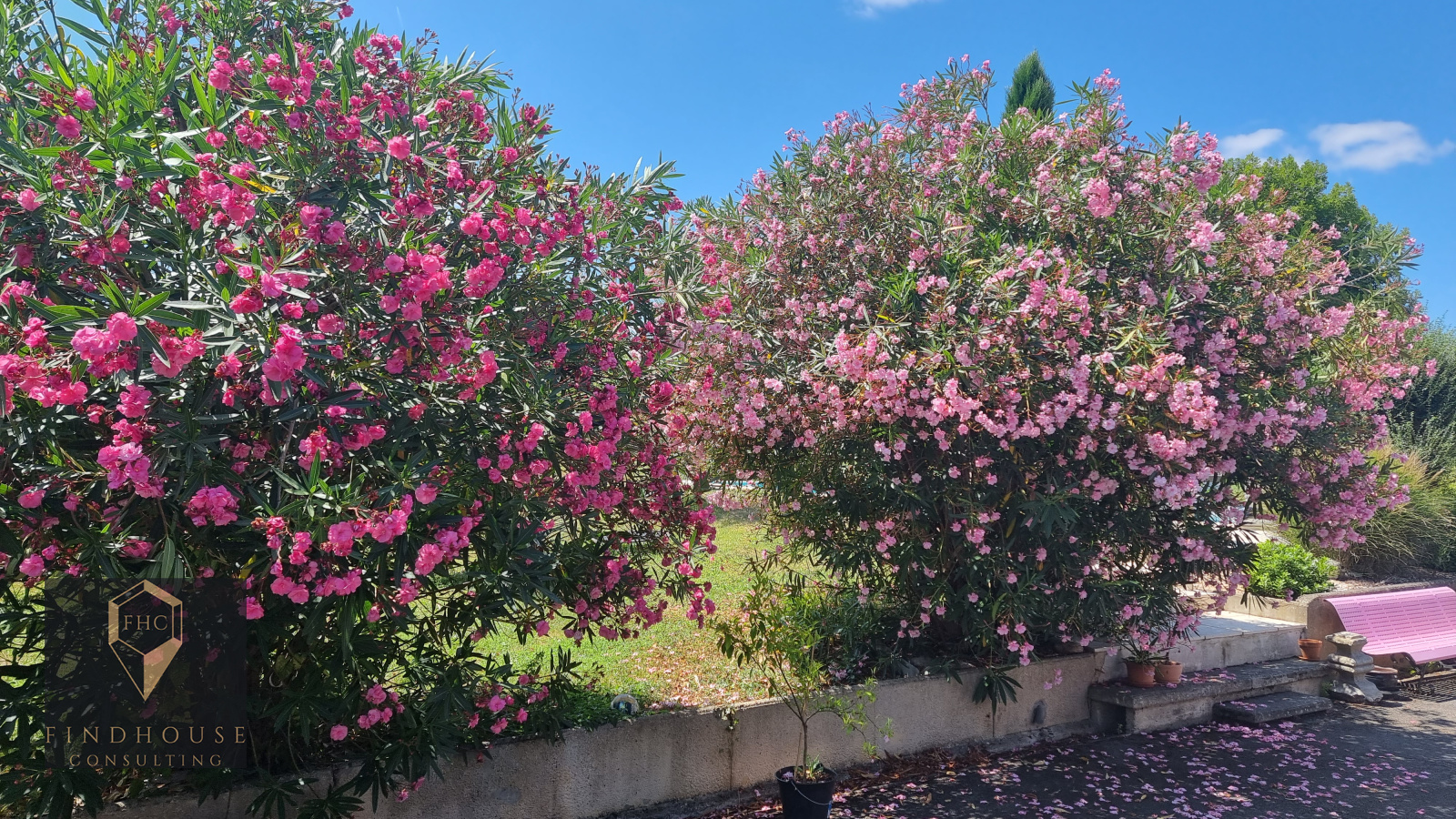 A l'extérieur au jardin, entrée des véhicules sur allée en bitume, une piscine traditionnelle 10x5 liner au sel et chauffée par pompe à chaleur. Grande terrasse + 30 m² autour du bassin. Pergola de 9 m² au jardin en bordure de piscine. Puits. Local technique pour la piscine et stockage outil + abri bois. Arbres fruitiers (noyer, amandier, pommier, magnifiques lauriers roses, pin parasol, oliviers...). Possibilité de créer un parking au jardin et installation carport et agrandir la maison par les garages. Beaucoup de potentiel dans cette maison lumineuse !