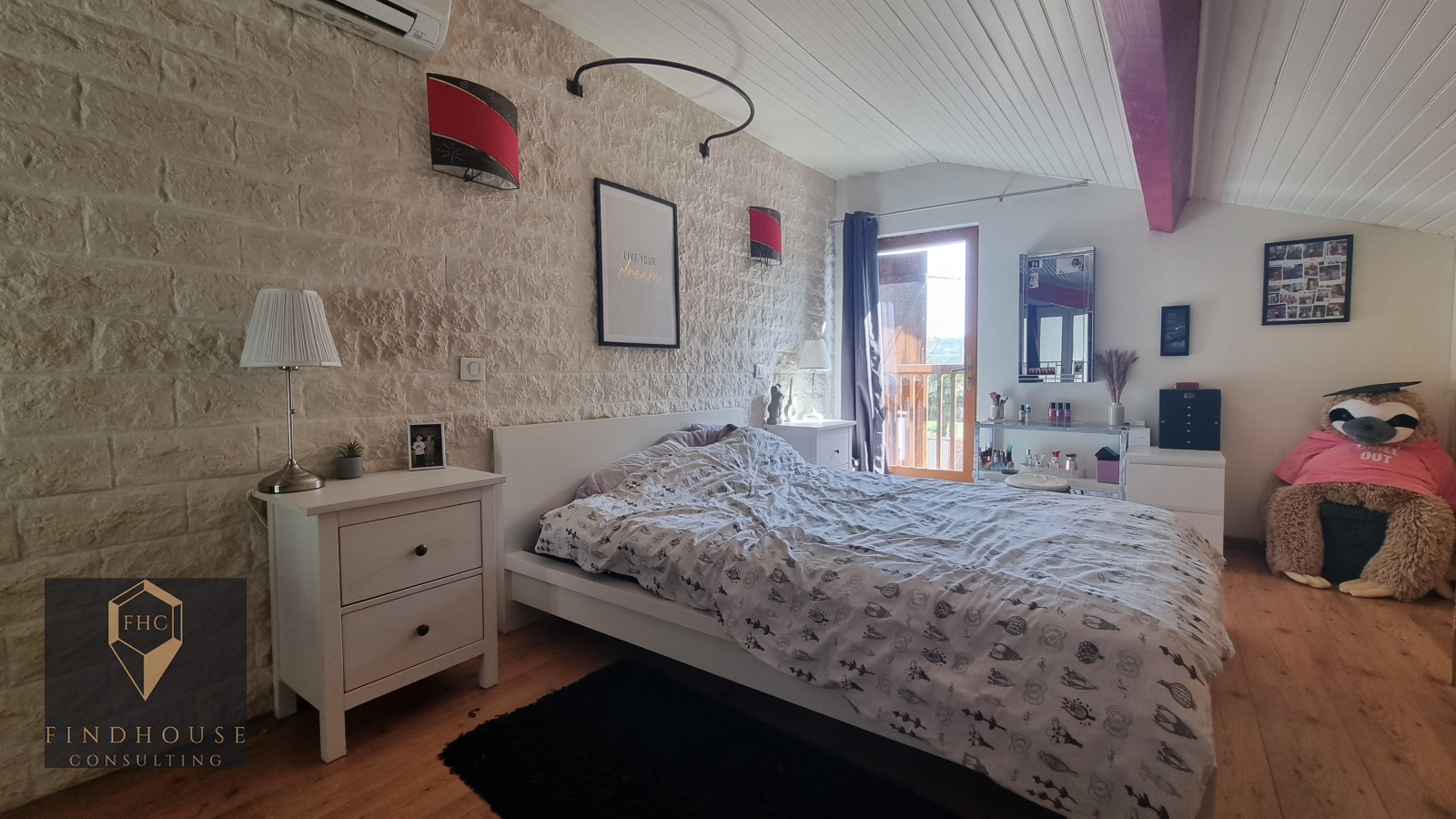 Equipements : système de chauffage air/air pompe à chaleur split Mitsubishi réversible dans toutes les pièces + production eau chaude par panneaux solaires. Menuiseries alu / bois et pvc double vitrage + velux et volets roulants élec + solaire. Portail de 4 mètres ouvrant par système solaire.