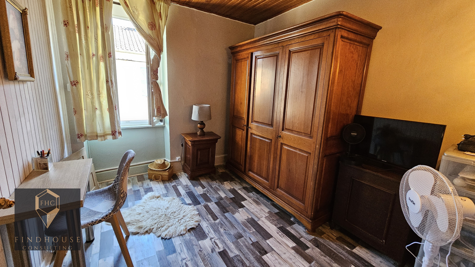 A l'étage, deux chambres dont une avec dressing , une salle d'eau et un wc. Des combles de 20 m² sont aménageables.