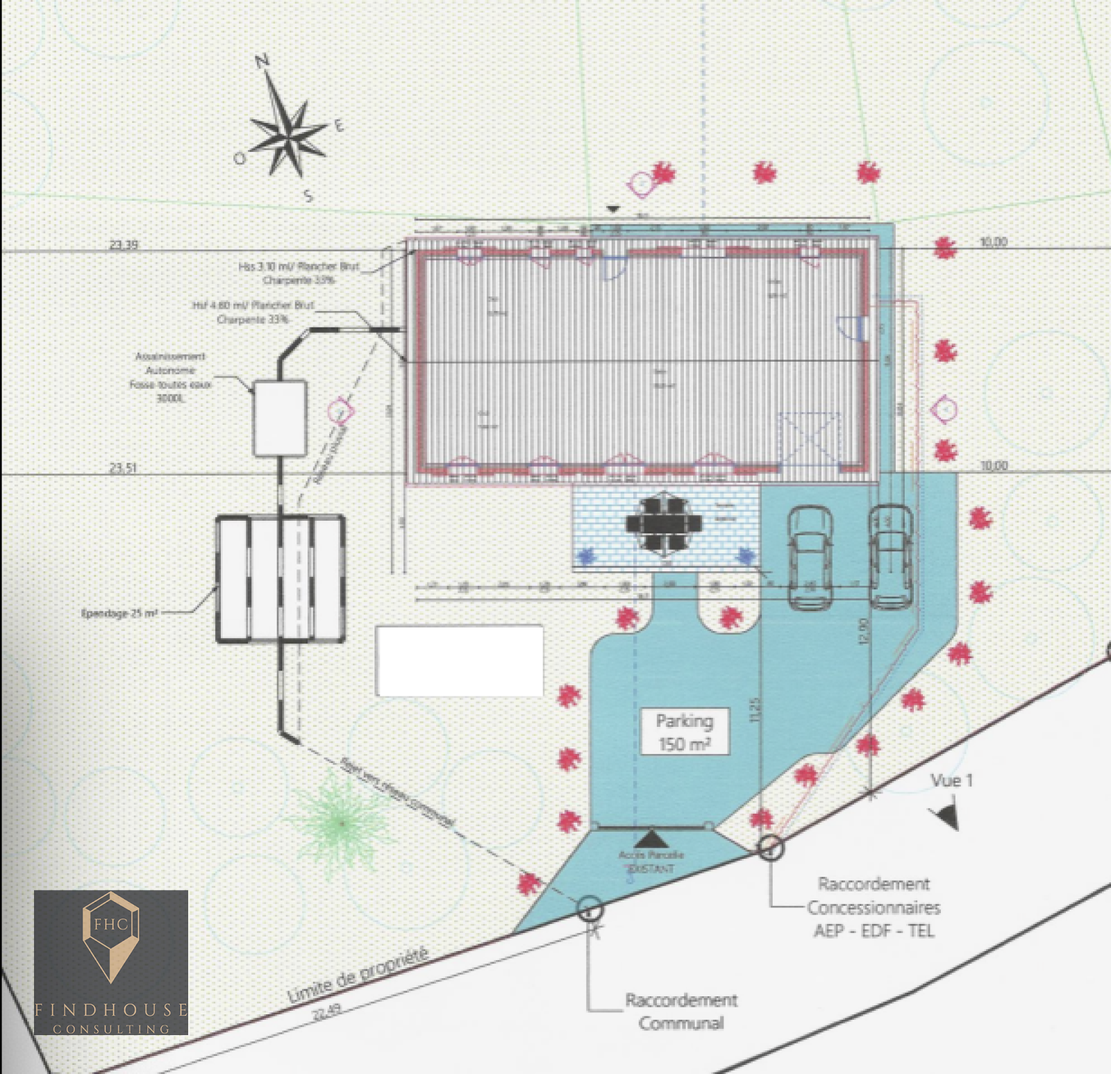 - CU et PC accordé pour une maison de plain-pied de 105 m2 habitable + terrasse et garage.