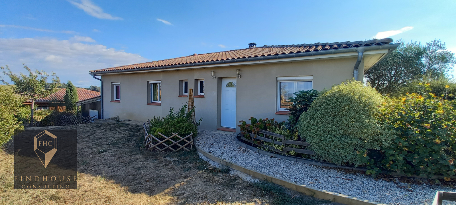 Lombez (32220)VENDU ! A 10 min de Lombez, L'agence Findhouse Consulting vous propose cette jolie villa de plain-pied de 140 m² habitables sur une parcelle de 1653 m² entièrement clôturée et arborée avec une picine hors-sol et vue sur les Pyrénées.