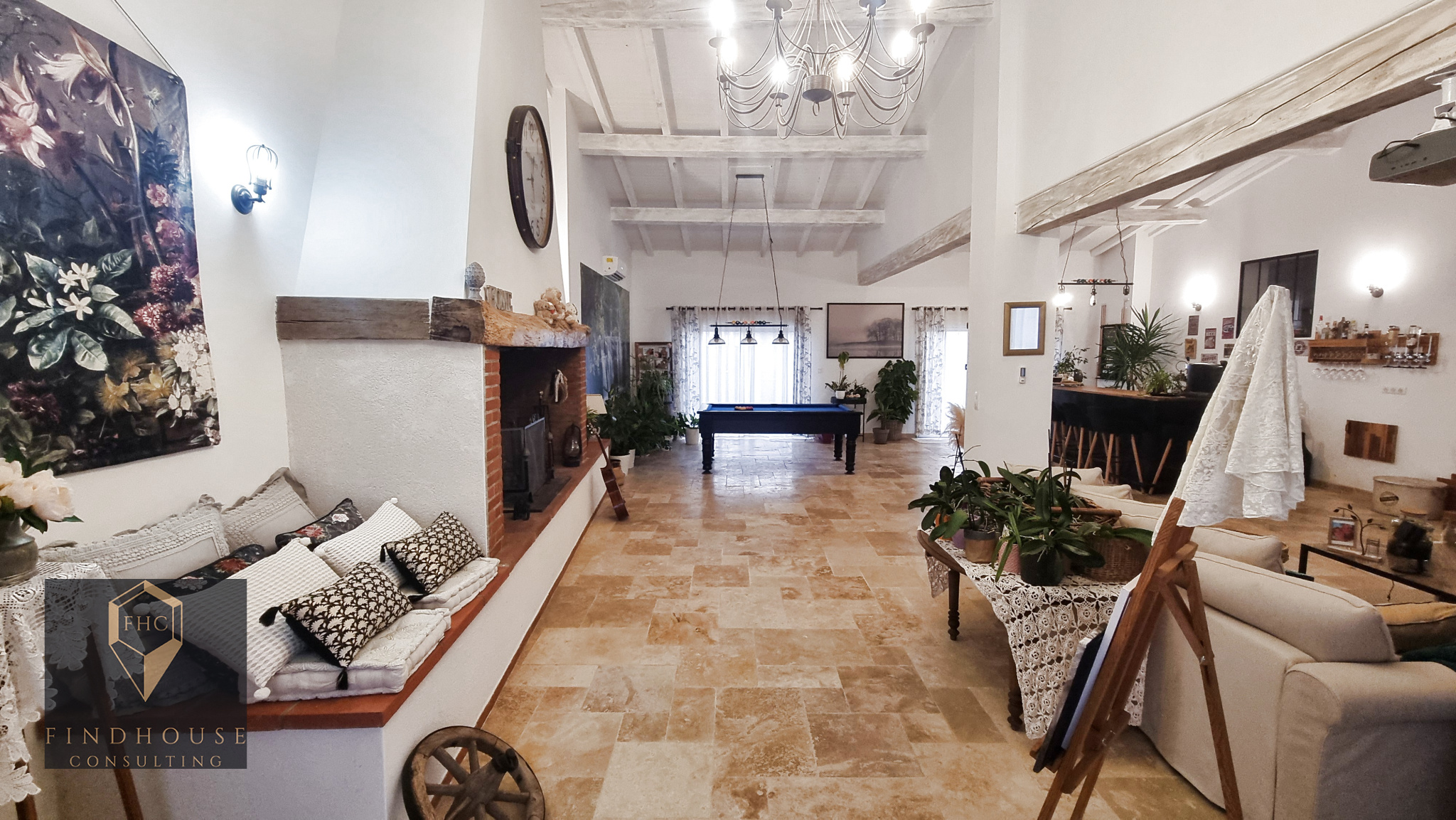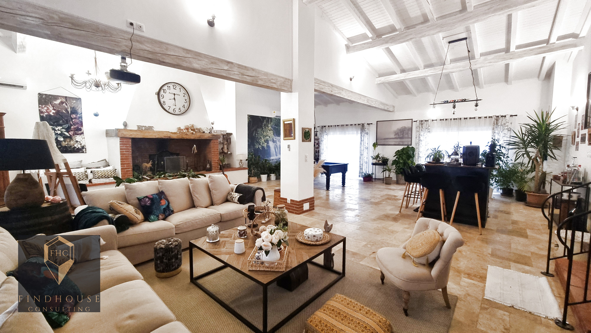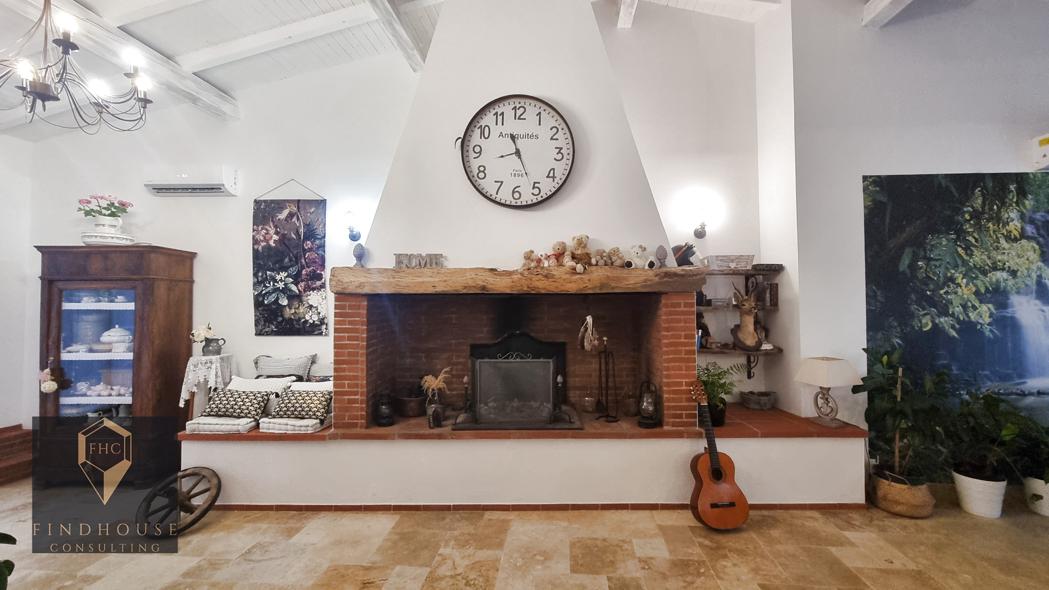 Orientée Est/Ouest, cette villa entièrement rénovée comprend une entrée sur cuisine us ouverte sur salon d'une surface de 42 m² avec un accès à la terrasse. Elle se prolonge d'un vaste séjour en cathédrale et lumineux de 104 m² avec une grande cheminée et de grandes ouvertures permettant un accès direct au jardin et à la piscine.
