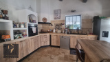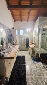 Equipements : isolation des murs par l'extérieur, poutres apparentes, beaux volumes. Menuiseries double vitrage. Portail ouvrant électrique. Système de chauffage cheminée au bois + clim réversible. Production eau chaude thermodynamique, panneaux photovoltaïques. Assainissement autonome micro-station. Double carport. Piscine 8x4 (liner / sel) entourée d'une terrasse bois. Barbecue.