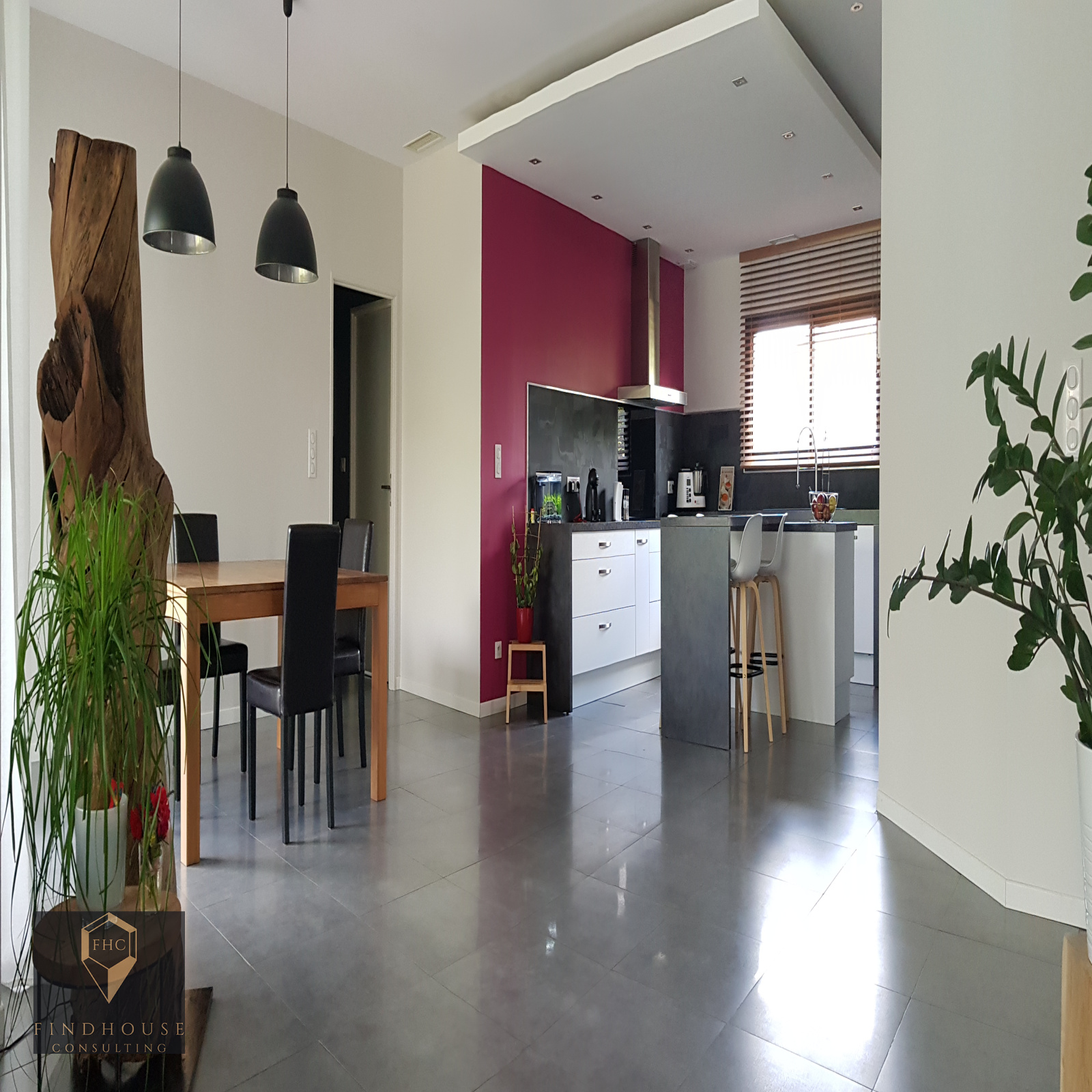 L'agence FHC vous ouvre les portes.....un pas en avant, il n'est plus possible de faire marche arrière ! Vous succomberez sous son charme dès votre entrée ; cette somptueuse pièce de vie de 70 m² , ouahouuu......vous serez attiré.e voire propulsé.e vers cette jolie couleur framboise qui illumine une très belle cuisine américaine, entièrement équipée et dotée d'un bel ilot central. Accès à la buanderie et au garage. THE MUST HAVE !
