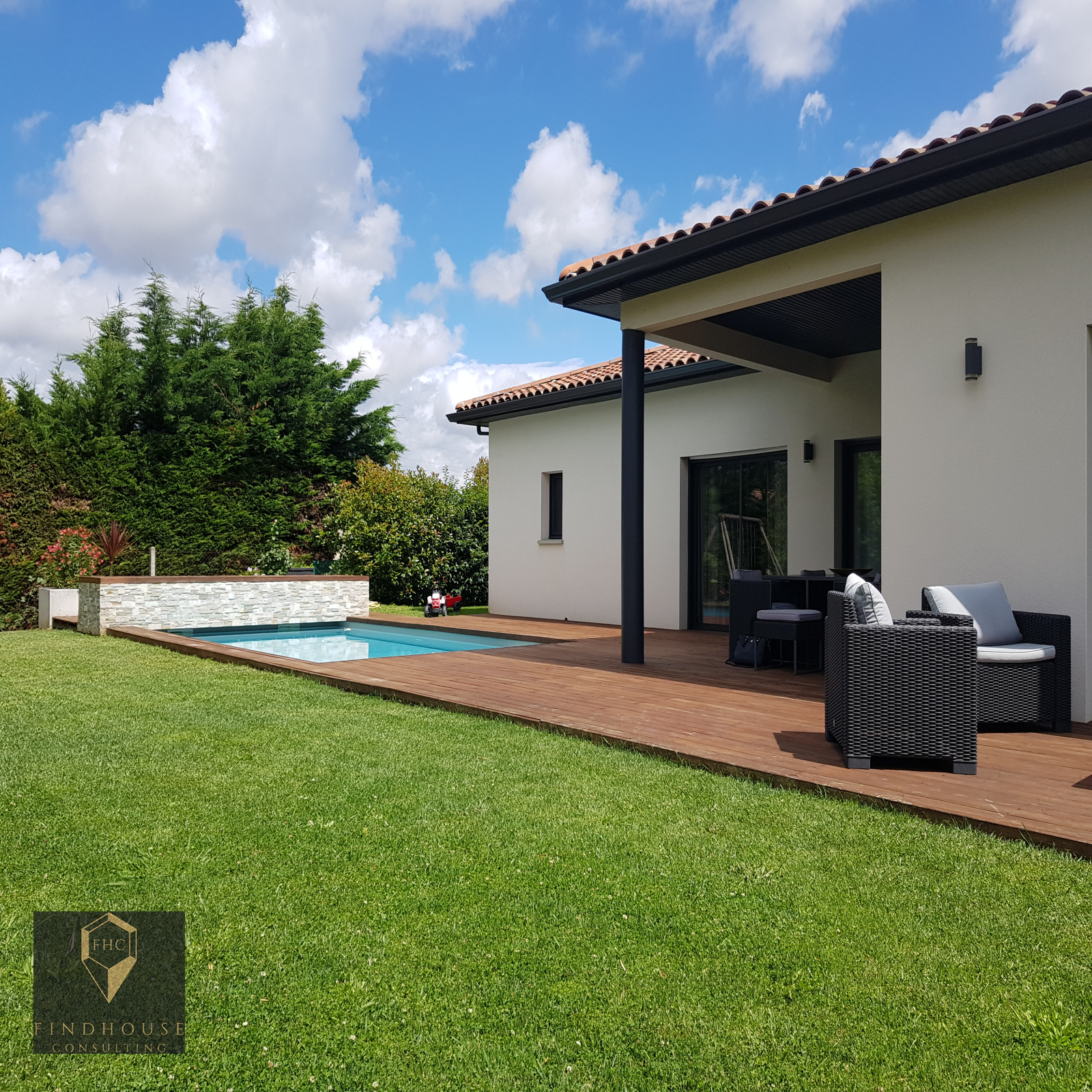 LONGAGES ! L'agence Findhouse Consulting a le plaisir de vous présenter cette DIVINE VILLA CONTEMPORAINE T6 de 165 M² de PLAIN-PIED située sur une belle parcelle clôturée de 893 m².
